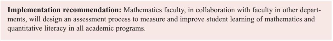 ✦ encourage collaboration among departments regarding instruction and assessment of mathematics outcomes embedded in non-mathematics courses
