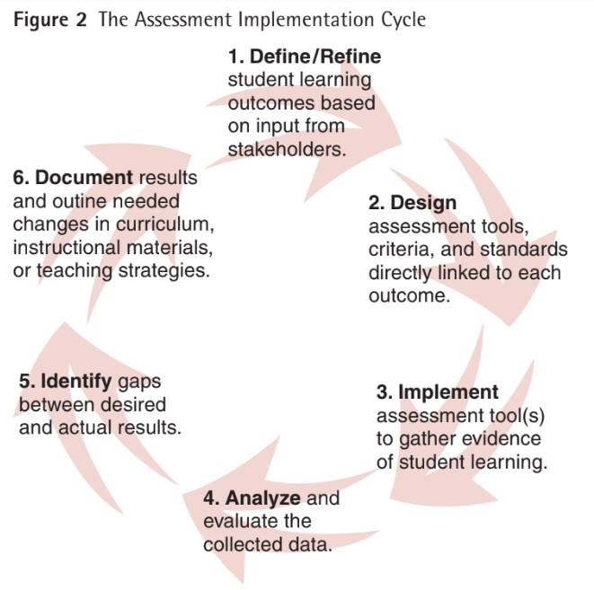 ✦ identify assessment tools linked to desired student learning outcomes and proceed through the Assessment Implementation Cycle to implement improvements